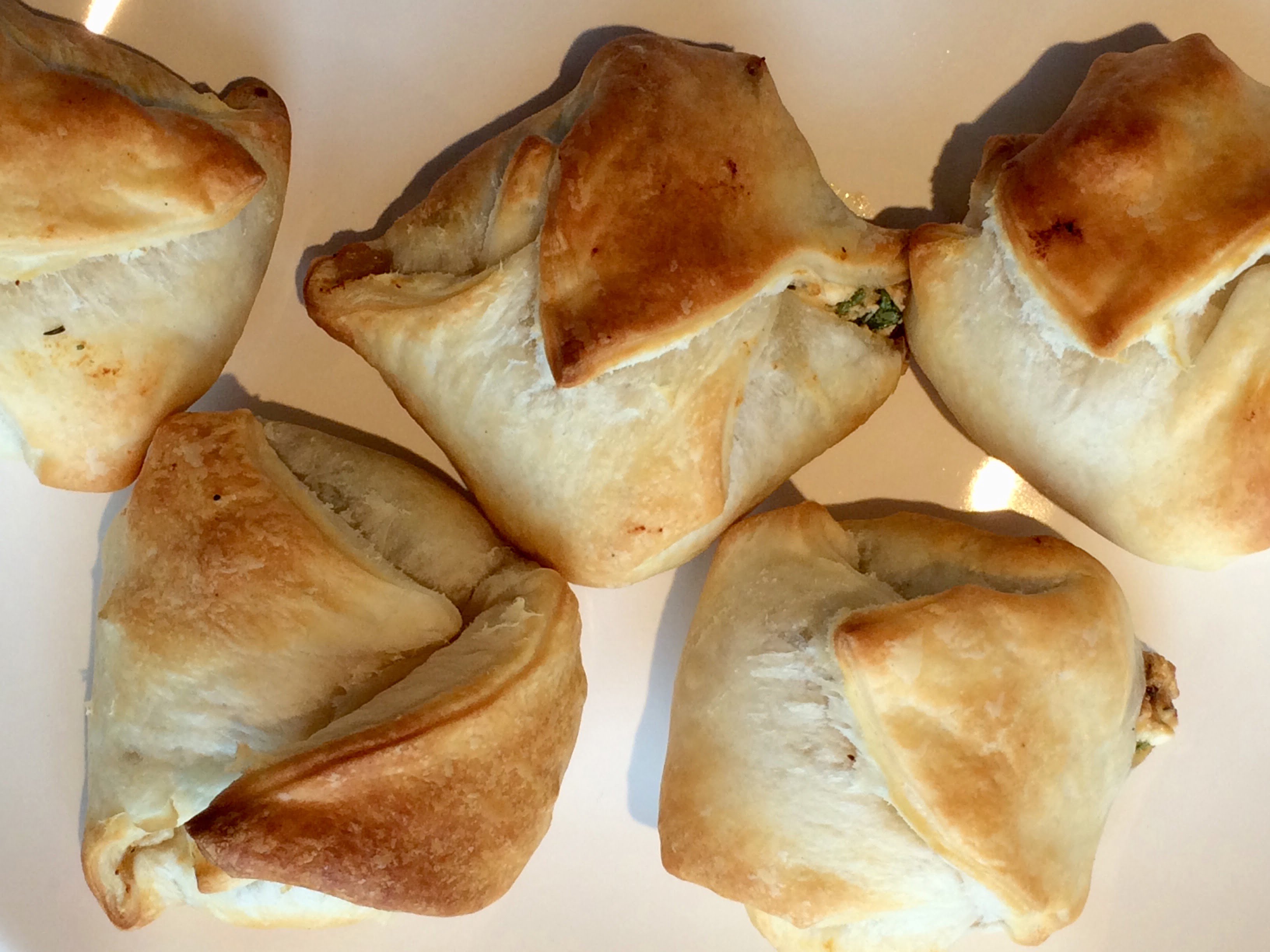 Blätterteig, Feta, Oliven, getrocknete Tomaten, Knoblauch, Salz, Pfeffer, Kümmel, Koriander
