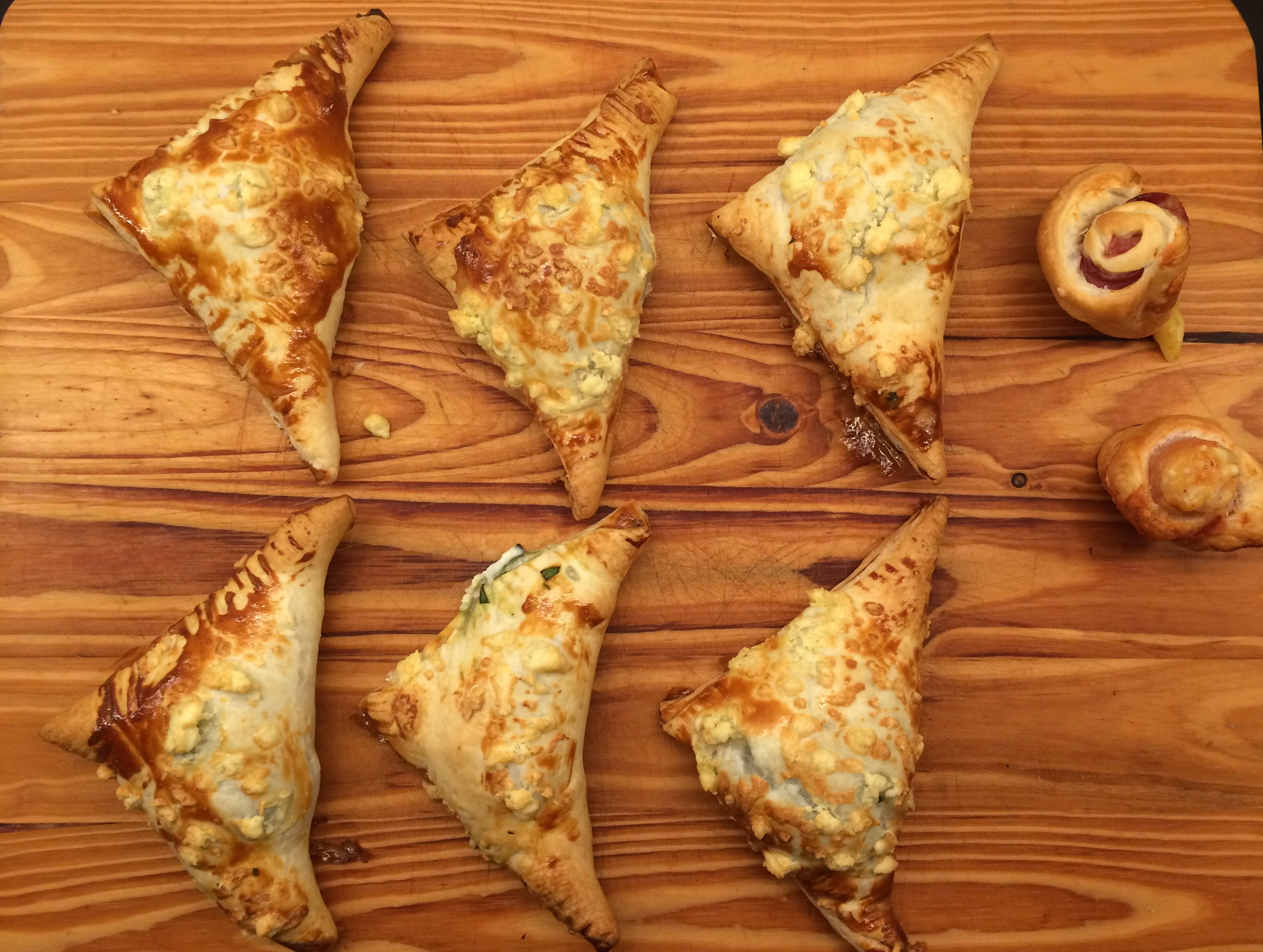 Blätterteigtaschen: Blätterteig, Spinat, Feta, Joghurt, Ei, Walnüsse, Schalotte, Knoblauch, Salz, Pfeffer, Muskat, Zitronensaft