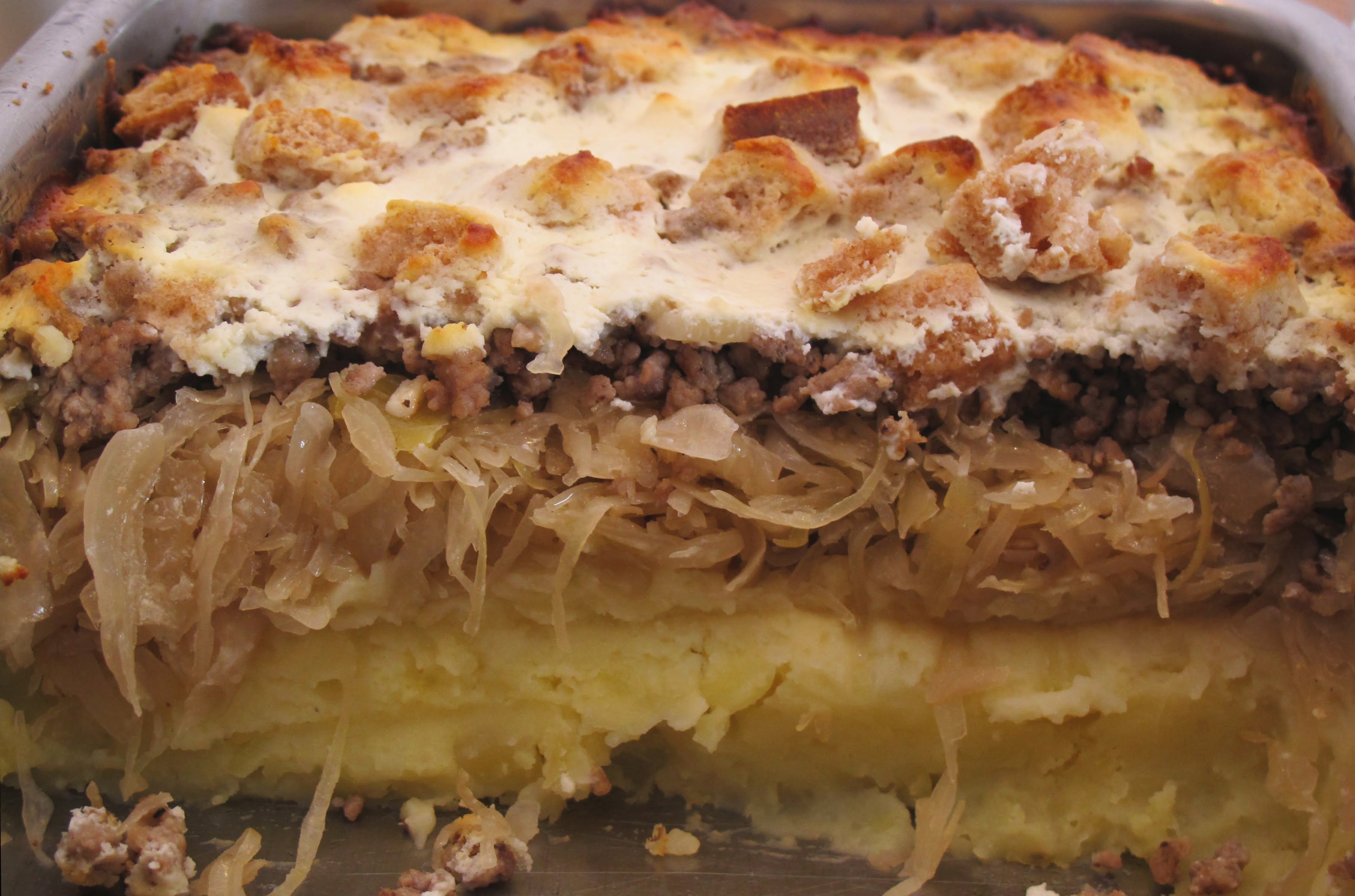 Sauerkrautauflauf mit Hackfleisch und Kartoffelpüree Wäre Mac Gyver Koch gewesen hätte er ein Restaurant für Aufläufe gehabt. Egal was für Reste … Ein Auflauf geht immer.